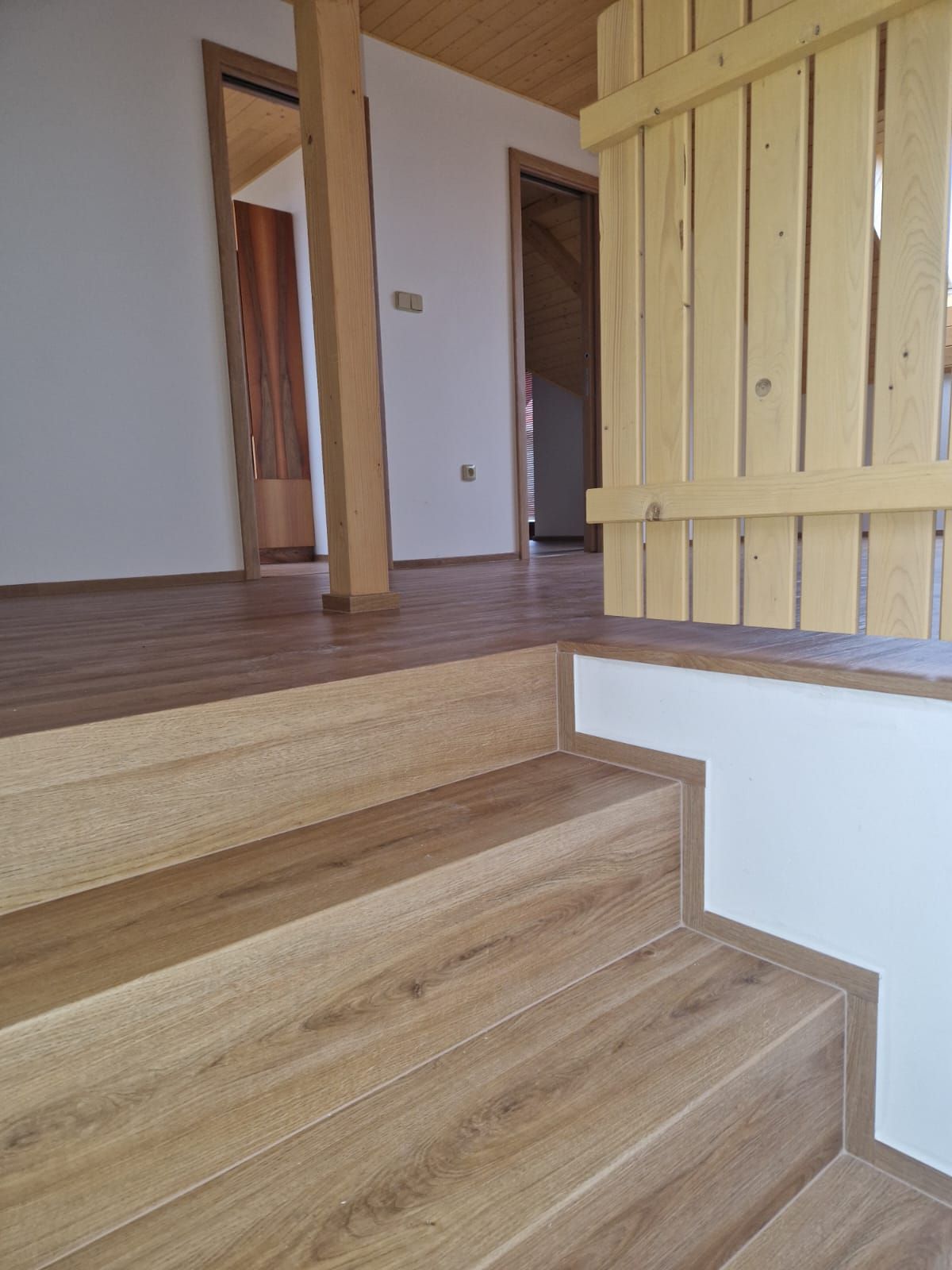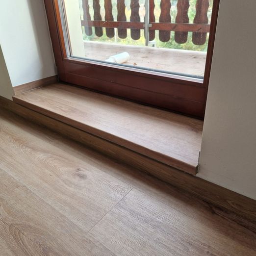 Montáž podlah není naše jediná činnost, naší prioritou je i montáž schodišť, parapetů, prahů, obvodových i přechodových lišt a to vše v dekoru podlahy. A dále montáž a dodávka interiérových dveří.